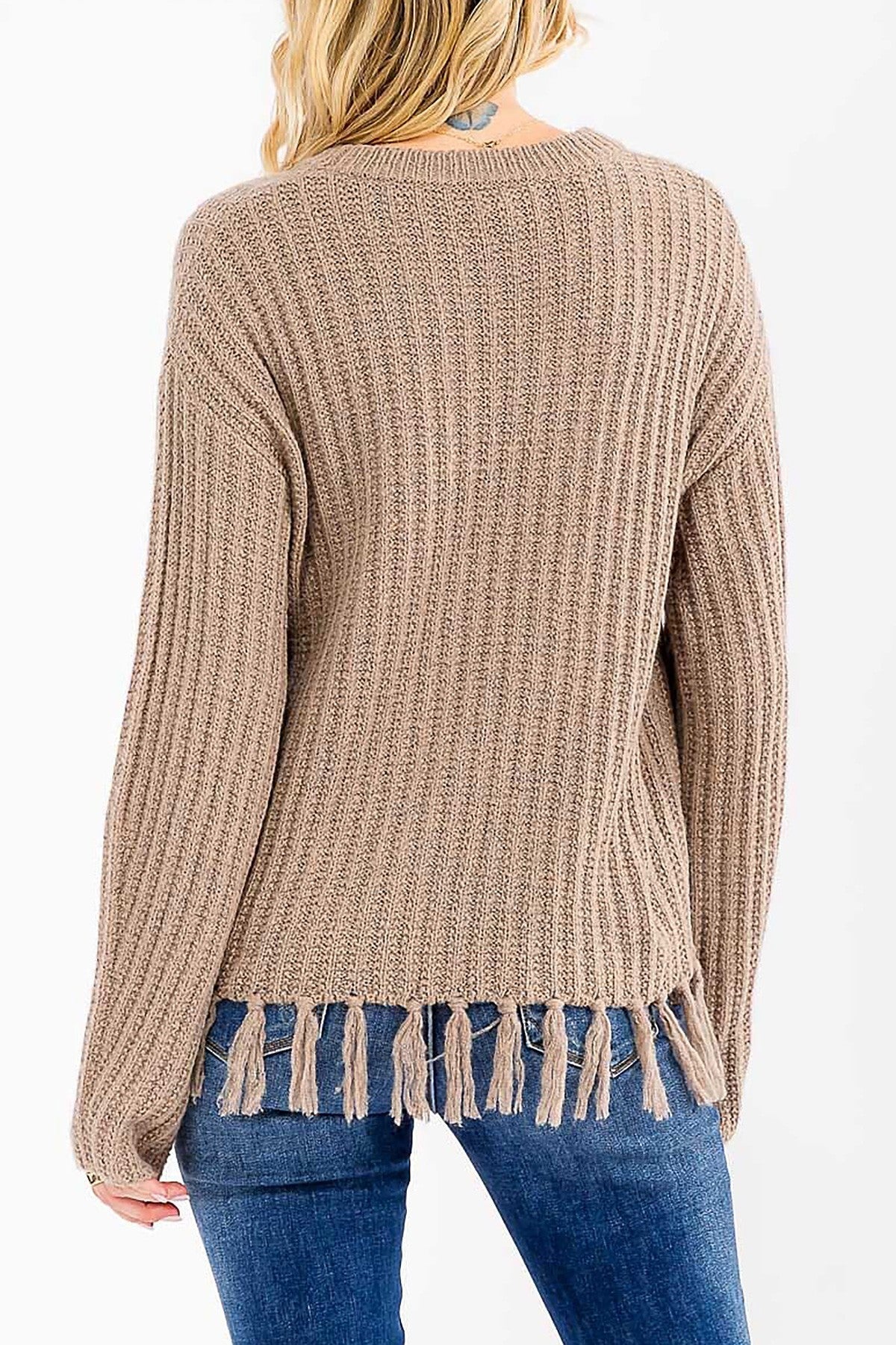 FIT: True to sizeSOLID ROUND NECK FRINGE TRIM HEM PULLOVER SWEATER * 68% Acrylic 36% Nylon 8% Wool.
