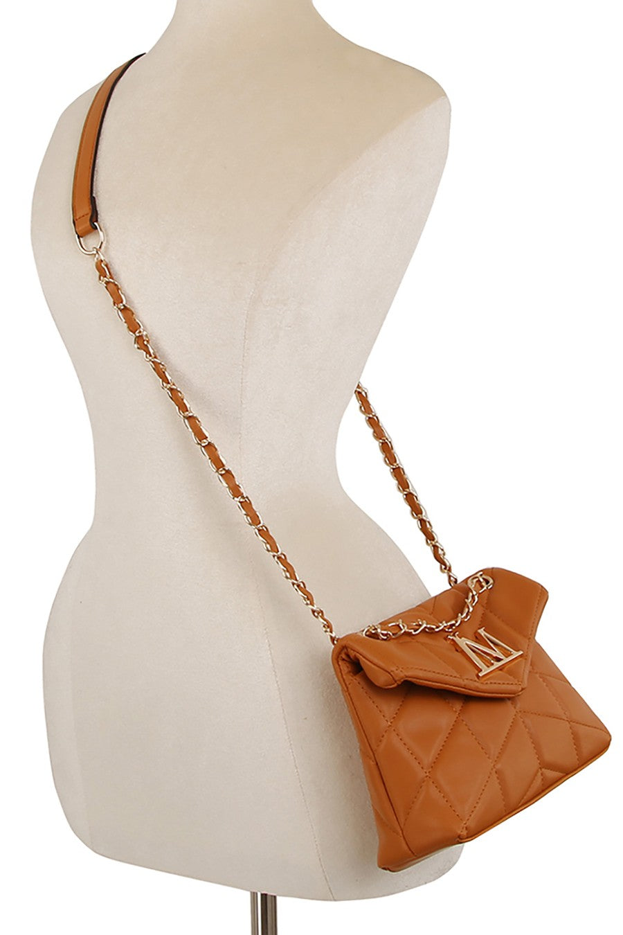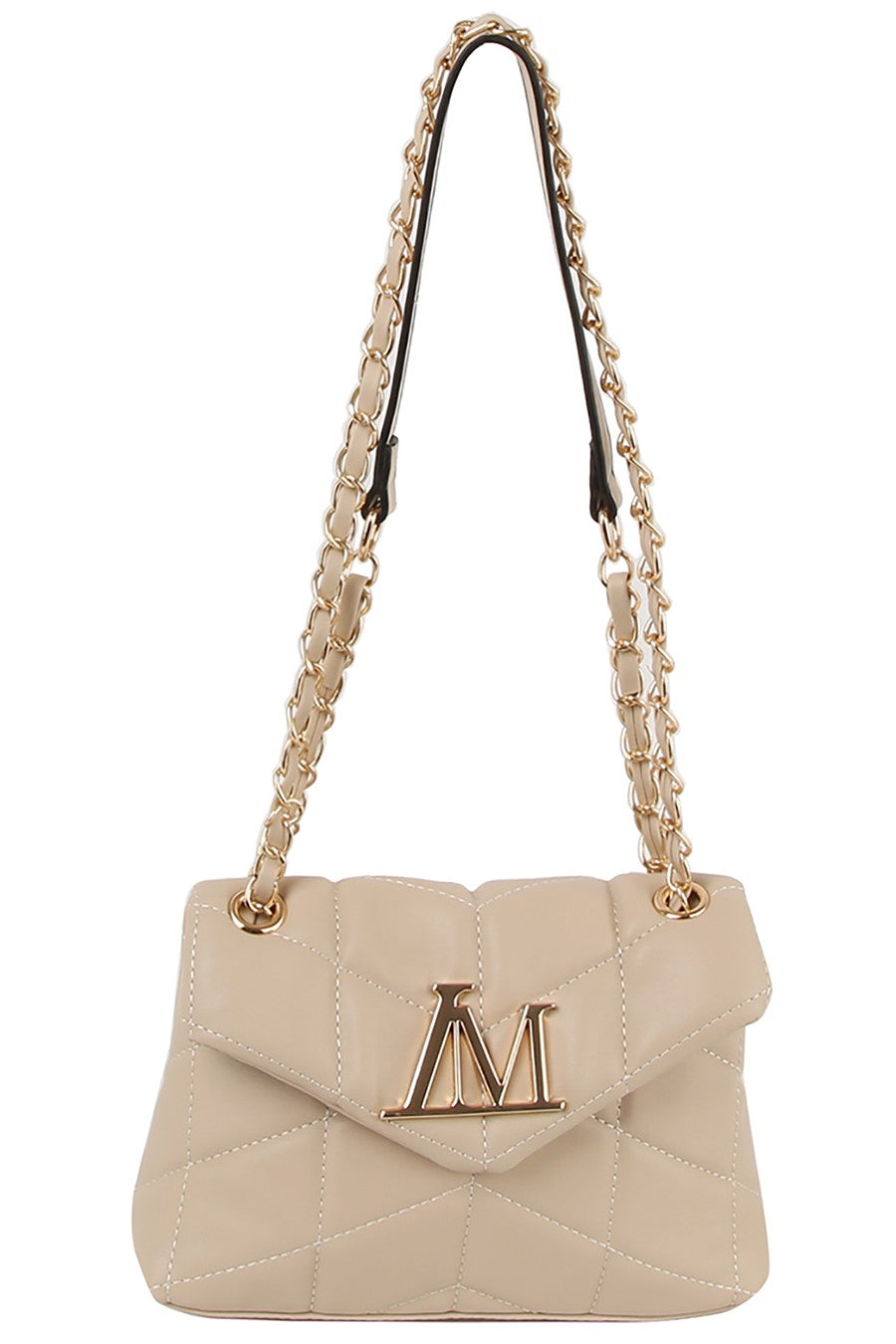 Quilted Logo Flap Crossbody Shoulder Bag Faux vegan leather Magnetic snap closure Gold-tone hardware L 8.5 * H 6.25 * W 3.25 (12 D)