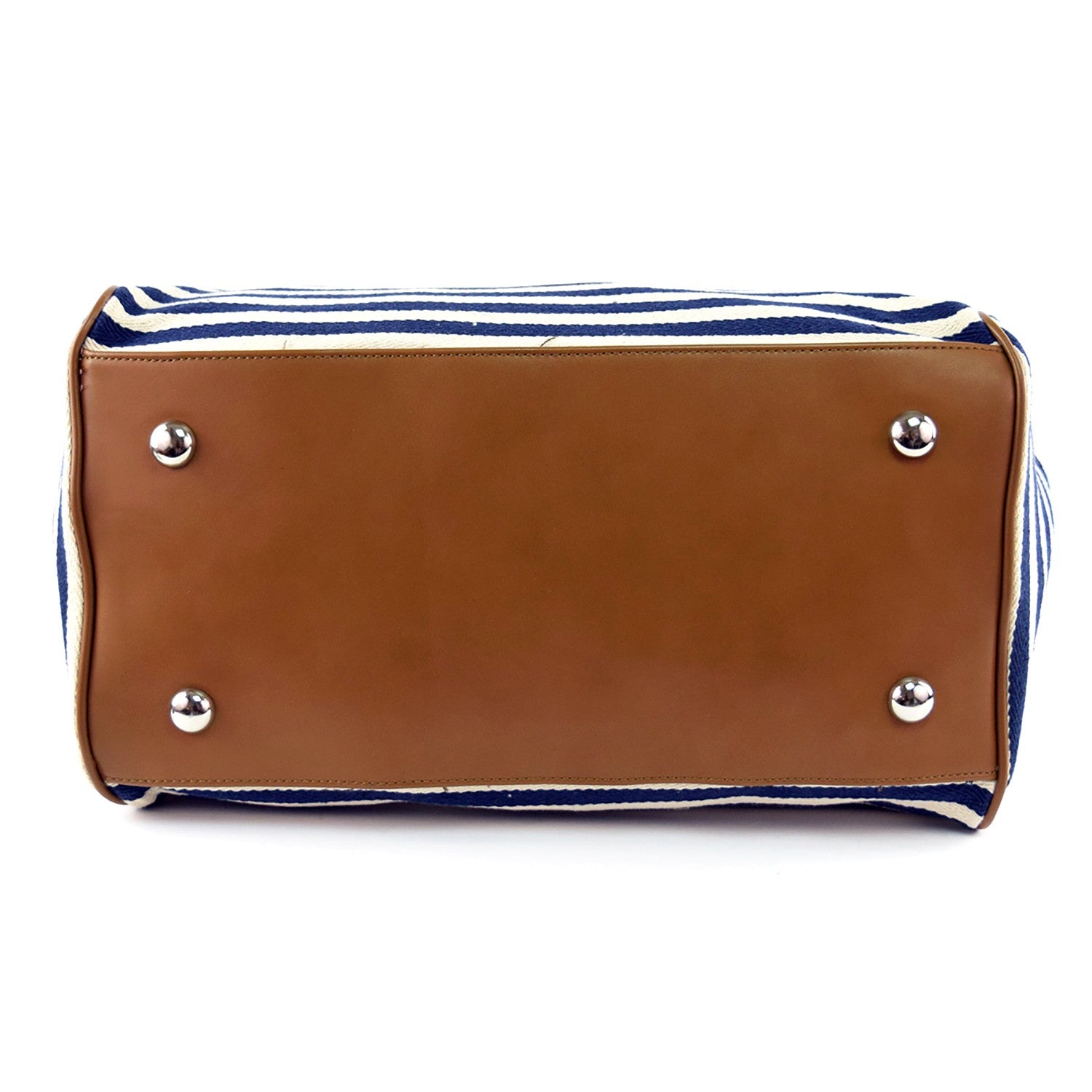 Denim Stripe Overnight Weekender Bag Canvas Faux leather Zip top closure Silver-tone hardware L 17 * H 12 * W 10